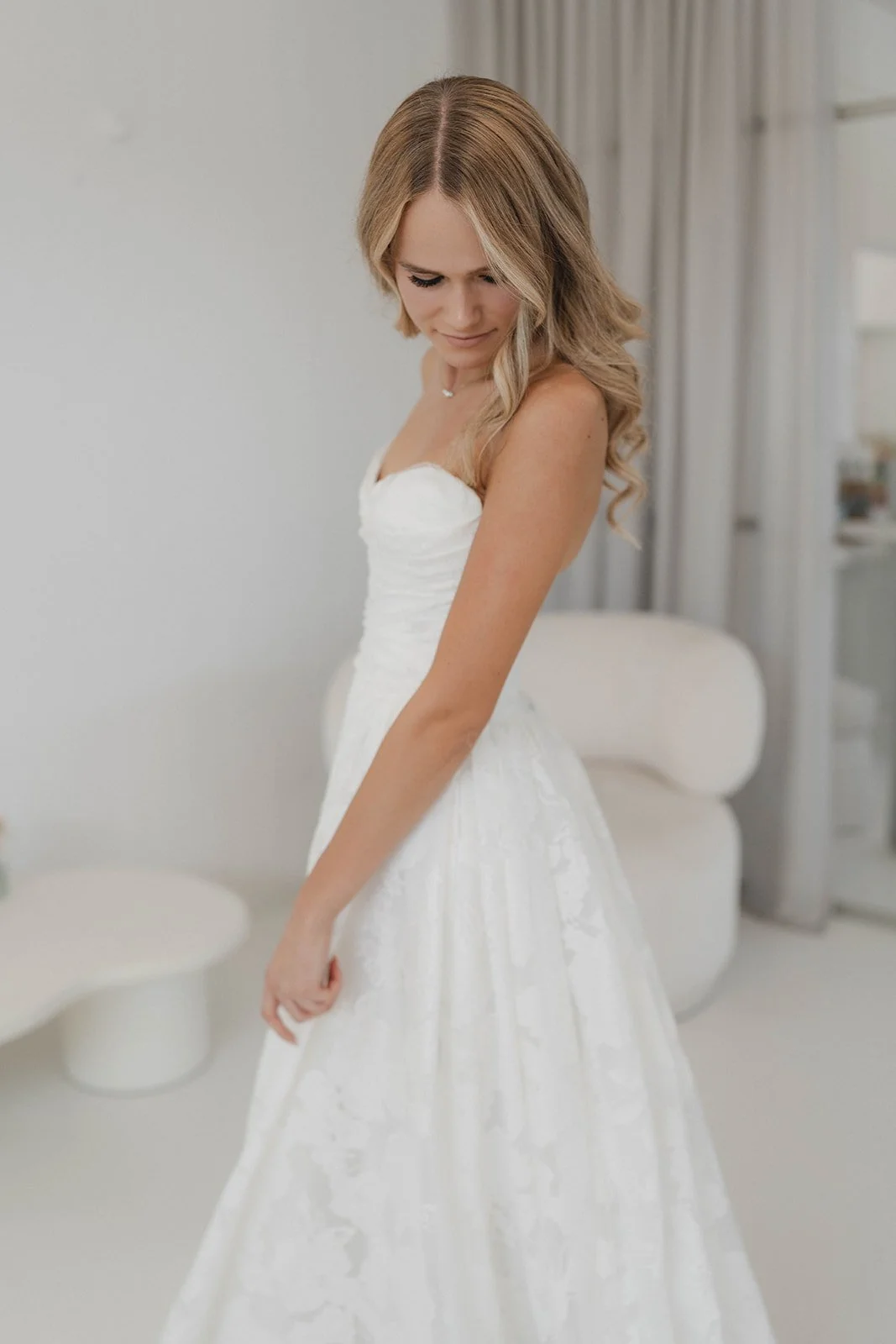 Good to know: Wir arbeiten mit einem Komplett-Paket-Preis. Du zahlst einen Gesamtpreis und darin ist bereits alles enthalten, was zu einem Brautkleid einfach dazugehört: die Änderungskosten, der allerbeste Rundum-Service von Anfang bis Ende, ein Notfall-Reinigungsset für deine Hochzeit und - wir haben gehört - auch eine kleine Überraschung zum 1. Hochzeitstag!