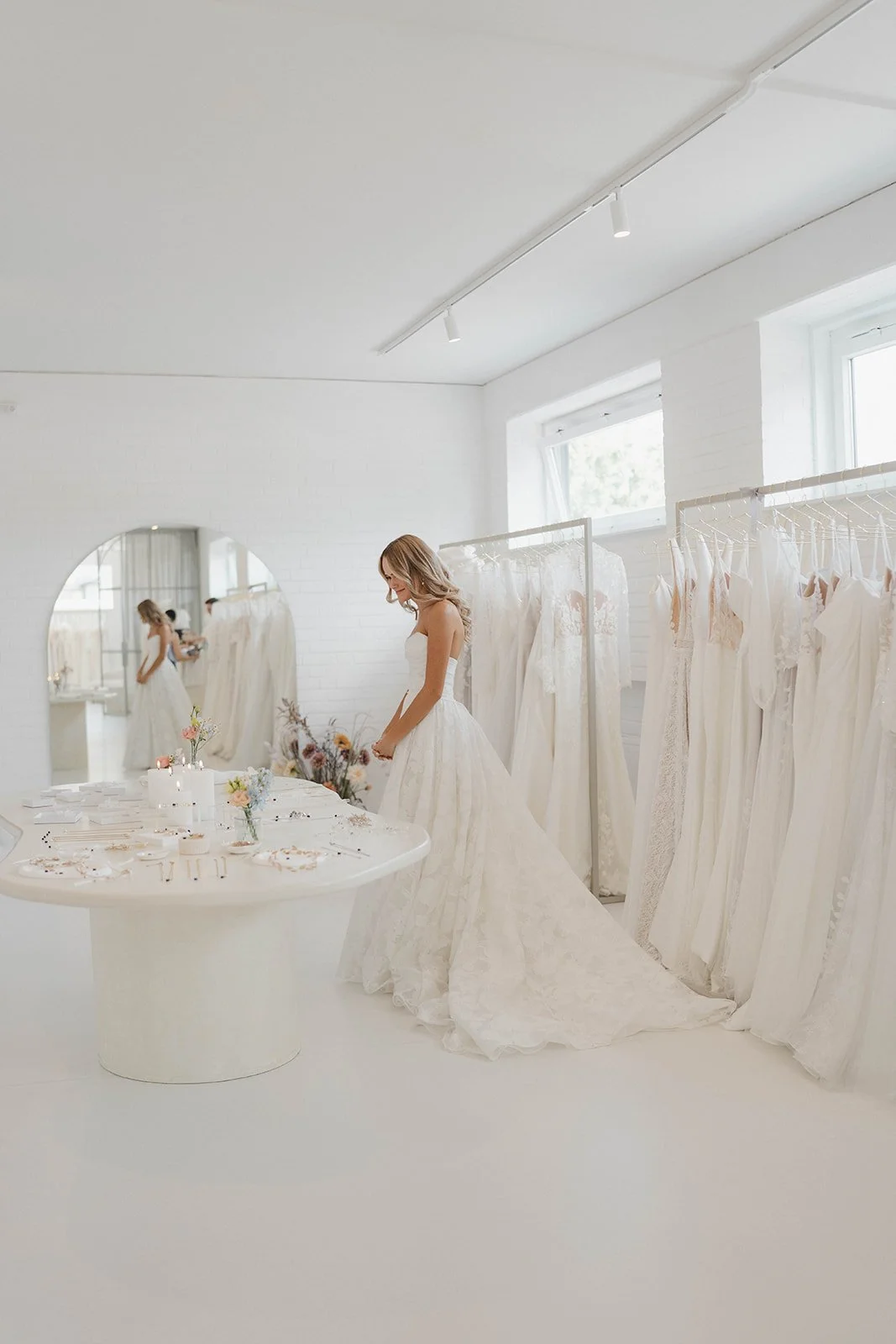 Wir lieben es so richtig, uns Zeit für dich zu nehmen und einen sicheren und wunderschönen Ort für dich zu schaffen, an dem du dich komplett fallen lassen kannst. Es ist hier immer ein bisschen wie ein Besuch bei einer Freundin - wir quatschen, genießen leckere Snacks und Getränke und finden in der tollsten Atmosphäre das perfekte Outfit für euren großen Tag!